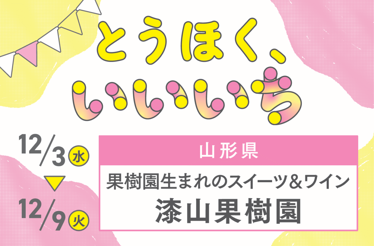 こんにちは、漆山果樹園です🍇12/3(水)~12/9(火)まで、北千住マルイにて開催される‘’とうほく、いいいち‘’に出店致します! 日時:12/3~12/9 10:00~20:00(最終日は18:30まで)場所:北千住マルイ2階 かレンダリウム