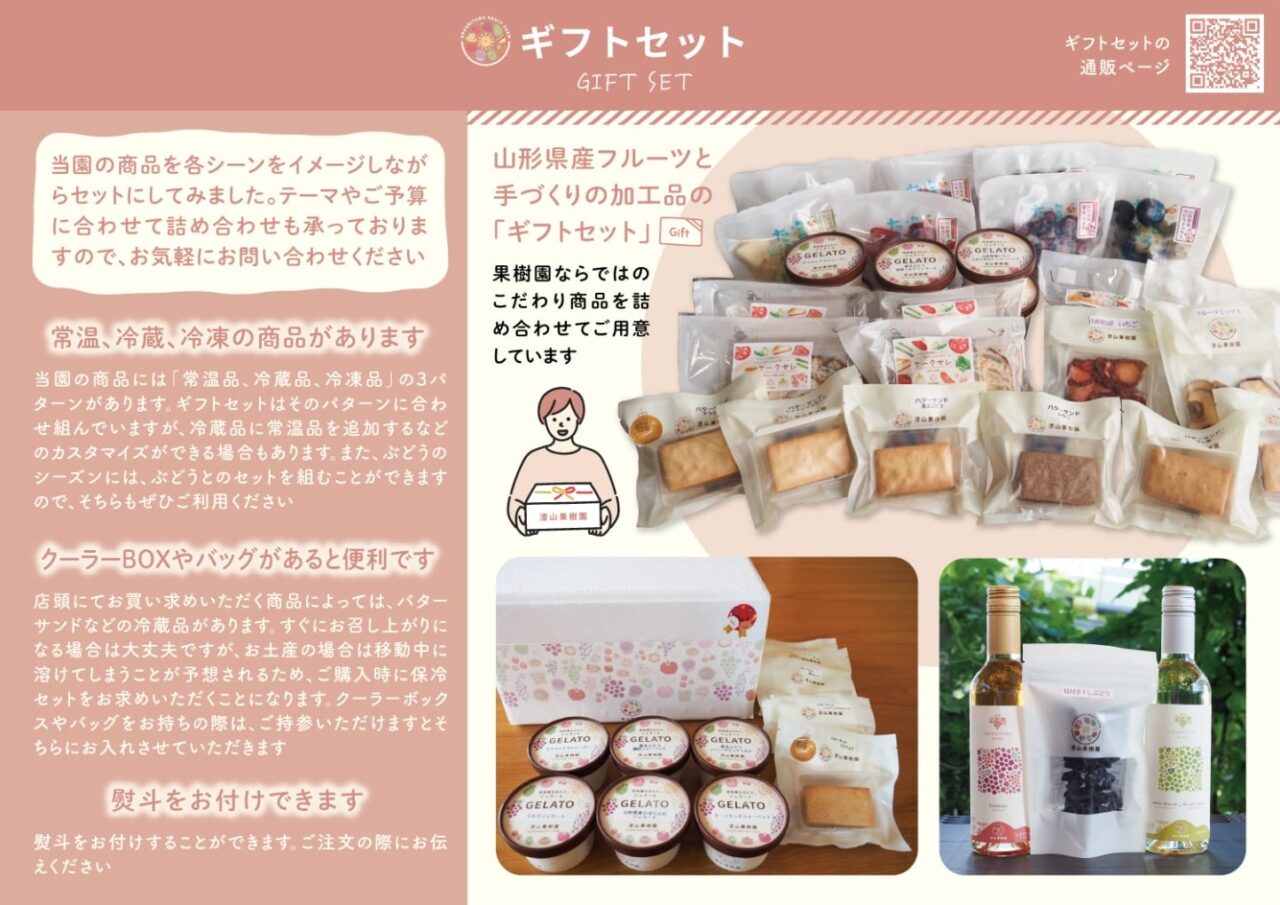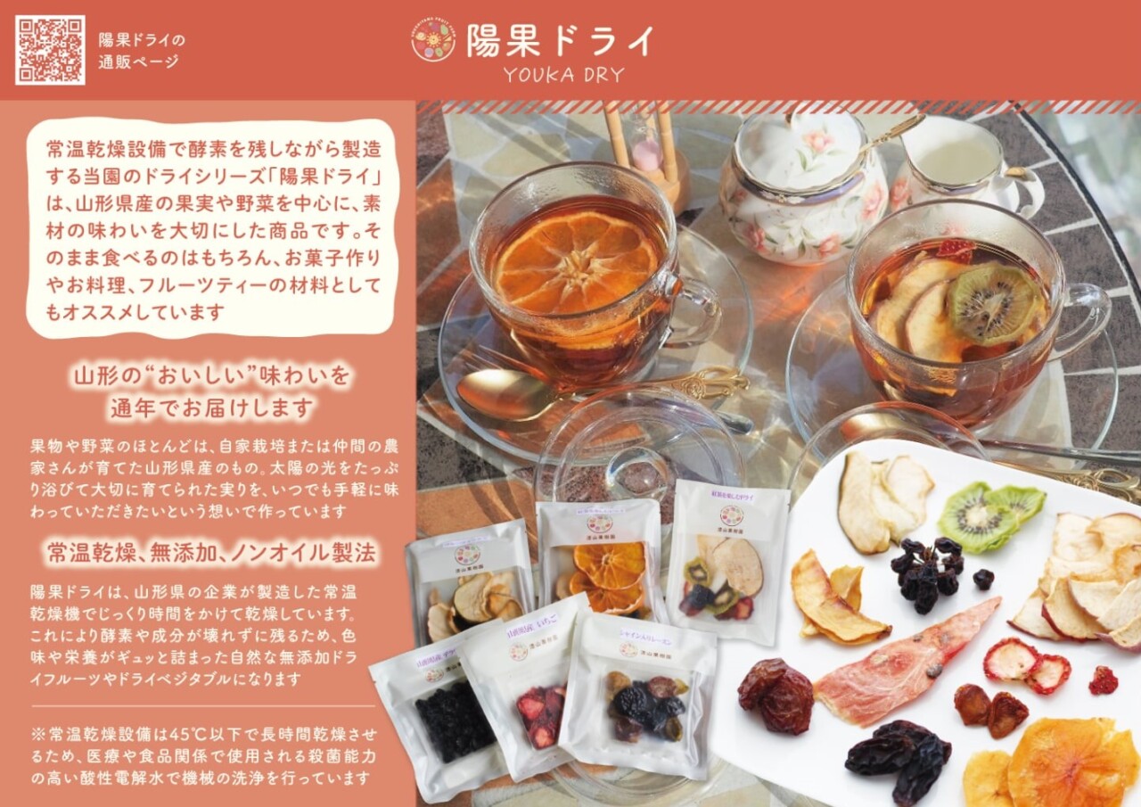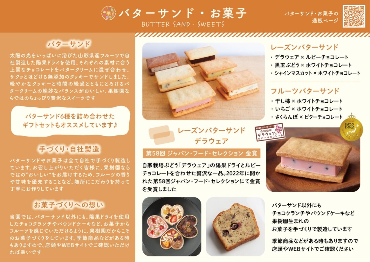 ぶどうをメインに季節の果物や野菜を加工しスイーツにアレンジしました。素材の自然な味が活きる、果樹園ならではの商品です。